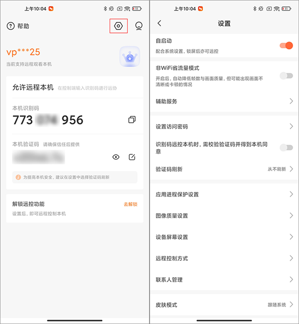 ①识别码:用于远程协助,支持复制,控制端可键入该识别码进行远程控制。