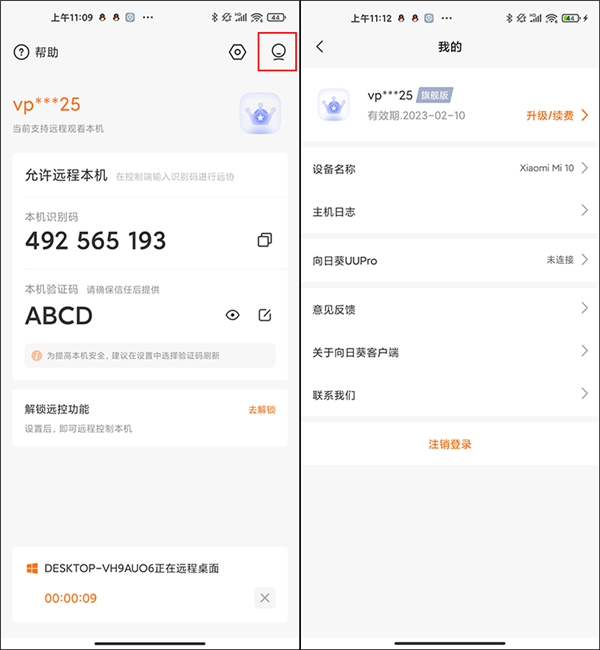 ⑤被扫码登录:使用控制端APP扫码登录,点击下载向日葵控制端APP