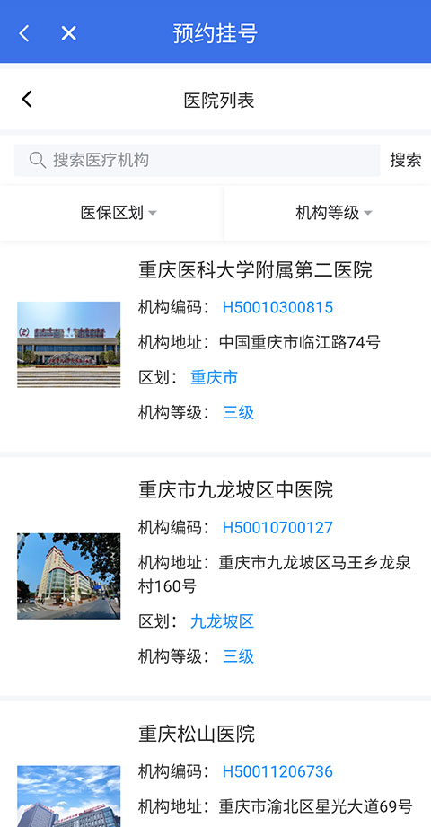 2、然后选择您想要就诊的医疗机构。