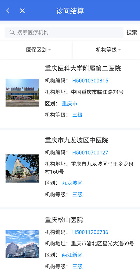 2、然后选择您所就诊的医疗机构。