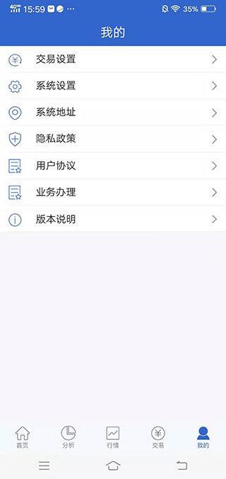 5、在交易和我的界面中则可以让用户进行登入和查看交易;