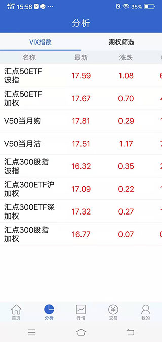 3、在分析界面中,用户们可以对期权进行筛选等操作;