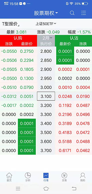 4、而在行情面中用户们则可以直观明了的进行查看股票期权;