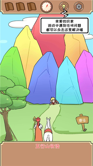 1、下载安装并打开游戏,游戏中遇到问题了随时都可以点击灯泡解决问题;