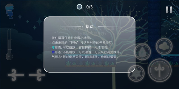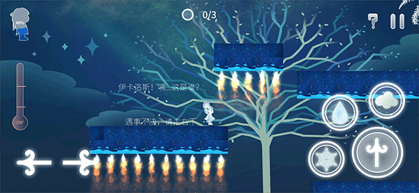 6、冰形态解锁后将角色切换至并形态,并利用跳跃箭头按钮和左右箭头按钮来操控角色向上前进,一直到此后轻触对话唤醒气形态;
