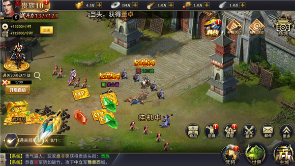 石灵圣域0.05折手游采用挂机设定,玩家进入游戏只需要点击任务进行闯关即可,完成相应章节关卡还有大量资源可领取,收集招募三国各路武将,通过灵活搭配不同属性的武将组成多种阵容体系。大量副本以及PVP、PVE模式,玩家可挑战不同模式获取资源,利用资源培养武将,提升它们的战斗力!
