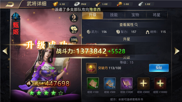 2、点击武将可以进行升级