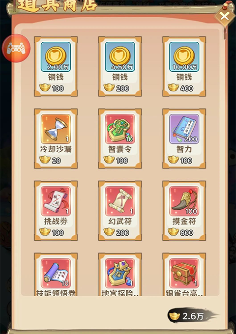前期训练场升级需要花费大量的金币,建议可以通过打开 充值豪礼-道具商店 购买缺的金币不间断升级训练场。