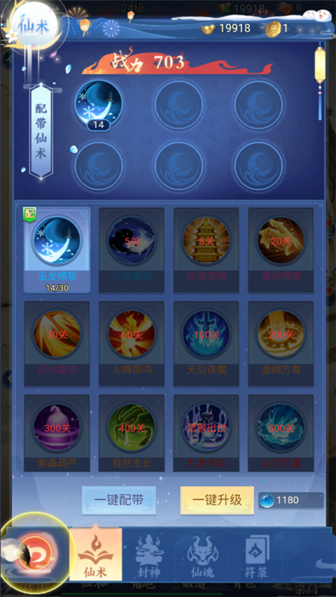 3、有了真气可以升级法术(真气可以通过闯关、BOSS等拖进获取)