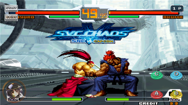 拳皇VS街霸游戏玩法以拳皇系列(尤其是拳皇2002)为基础,采用相同的四键配置和许多相同的技巧。不过,游戏并没有采用团战的形式,而是沿用了传统的回合制一对一的形式。每场比赛都以玩家角色和对手之间的对话开始。游戏中引入的一项新技术是 Front Grand Step,它允许玩家通过向前冲刺来取消攻击。玩家可以在防御对手攻击的同时执行此技术,这将消耗一个能量计等级。