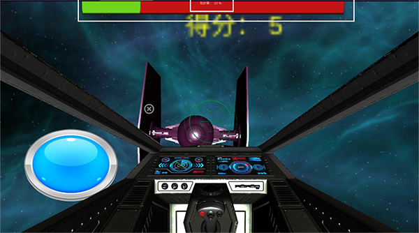 4、屏幕上方的进度条是我们的战斗机保护罩能量条,落石和敌机发射的炮弹打中我们的战斗机时,能量条会缩减。当战斗机的保护罩能量降为0时,游戏结束。