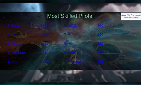 5、结束后会出现10名最熟练的飞行员,也就是游戏得分前10名。想要你的名字在榜吗,快快玩起来吧!