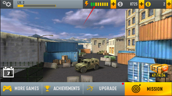 4、在这款游戏中,没参加一个任务就会消耗一定的体力,体力的回复是根据时间回复的,当然,您也可以通过花费购买,期间在体力用尽时,是不可以参加任何任务的,所以要选择针对性任务,来获取奖励,购买新武器。