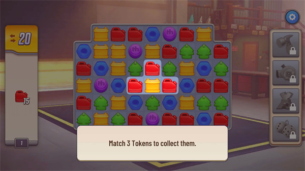 6、你的目标是通过移动图案的位置,以形成三个或更多相同图案的连线,一旦匹配成功,这些图案会消失并获得分数,当达到左侧所显示的目标时即可过关