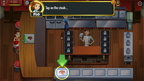 美女厨师,在这里可以让你在专属于餐厅里模拟生活,看看你的经营之道是否独具风格。在游戏中玩家需要扮演一个叫做Flo的女性老板,你需要帮助他在DinerTown这个人流湍急的城市里经营多家餐厅,操作非常简单,采用了全触屏点击模式,我们会看到食物平台上摆放着各式各样的食物,从汉堡到薯条、寿司、水饺等等不同餐点,您只要点击相关的位置,并再将餐点送到顾客眼前即可。总而言之,美女厨师整体玩起来还是非常不错的,并且玩久了也不会觉得无聊,尤其是里面还提供了大量的关卡可以挑战,玩到最后可能会有一点点难度,但对于喜欢类似游戏的朋友来说超级简单,可玩性还是不错的,喜欢的朋友可以试试哦!