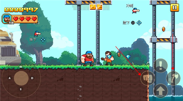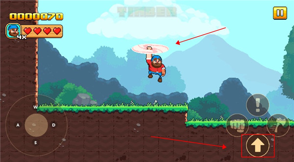 6、右下角的箭头是跳跃,点击两下可以二段跳,长按可以缓慢滞空