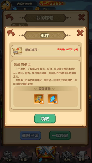 1、玩家进入游戏后,别忘了在邮箱中领取免费的初始奖励,帮助你快速上手。