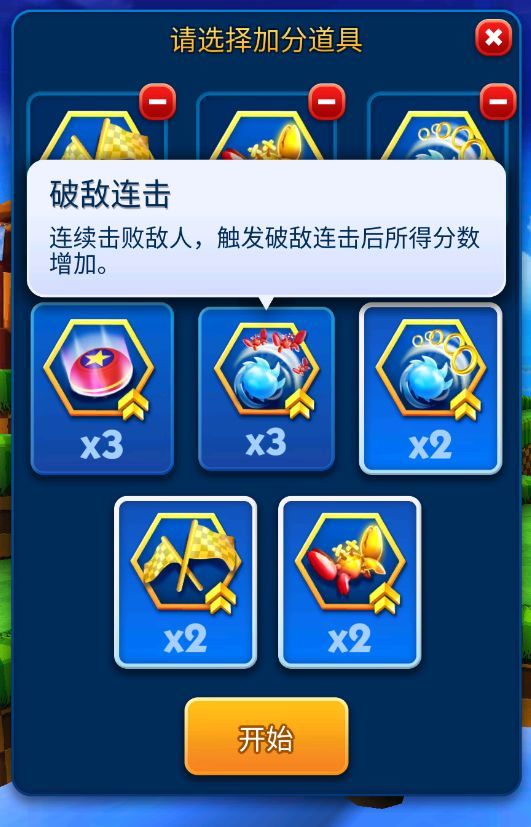 首先,最通用的是前两个,弹跳奖励和破敌连击,只要进行弹跳以及攻击敌人就能获取得分,也是我们前期可以长期使用的道具。