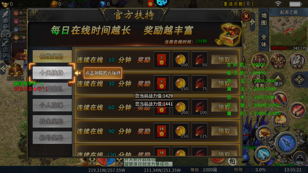 6、完成任务之后,点击上方的官方扶持,领取官方十日扶持奖励。