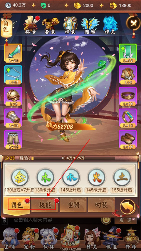 2、玩家可以给主角一件穿戴装备,提升战力,也可以给其解锁升级技能。