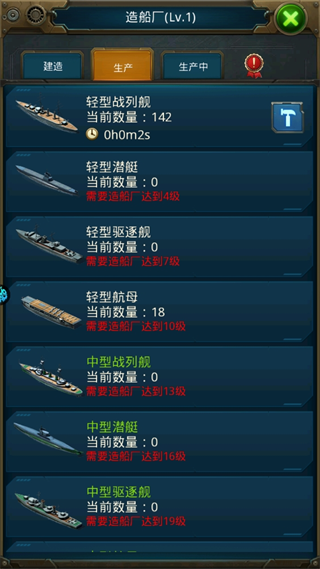 优先建造 “轻型驱逐舰” 等强力战舰,根据战舰属性和技能搭配阵容,如攻防辅结合。