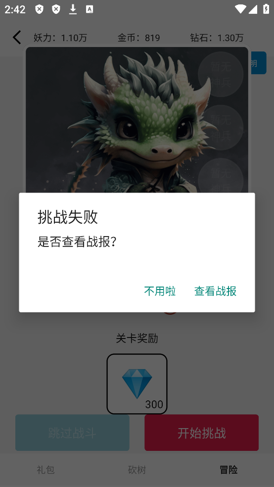 4、挑战boss,一键就能知道胜负,省去繁杂的战斗过程