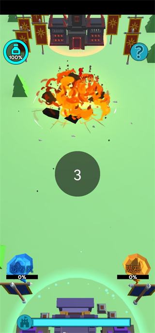 3、当下方龙卷风和陨石到达百分百时我们就可以释放技能了;