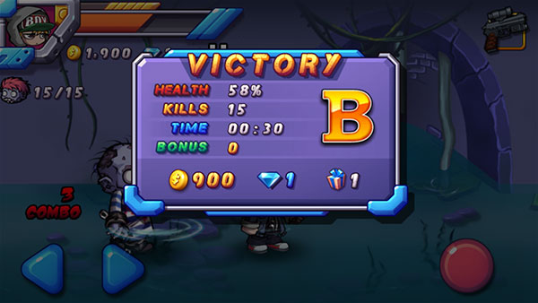 2、拿起你的武器,争取生存,你会赚金币和钻石杀死僵尸和生存任务。
