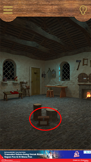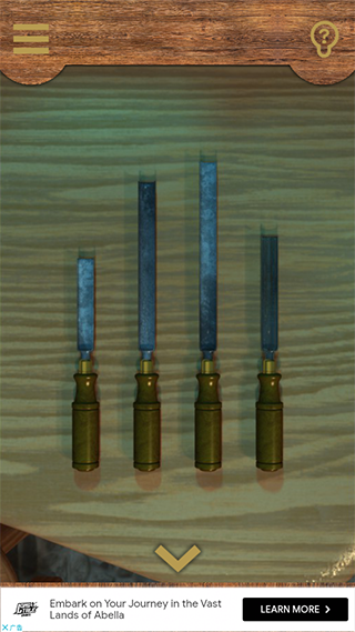 之后使用锤子把床边的木制蚂蚱砸开得到齿轮零件,让墙上的齿轮机关转动起来,再利用上面的提示解开门锁的谜题,就能走出第一个房间了