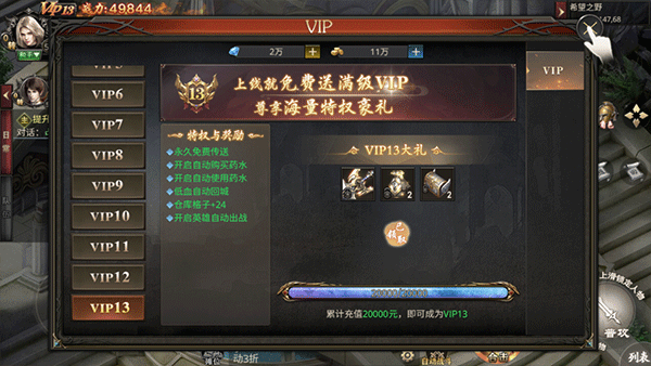 4、过完几个后,就可以领取满级vip特权福利;