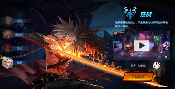 1、游戏内有剑影、诱魔者、铁拳、狂战四种职业可以选择,点击右边视频还能查看职业技能预览。