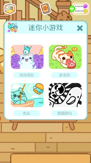 游戏中还设有四款萌萌的小游戏,可以不断获取金币,用来杀时间也是极好的;