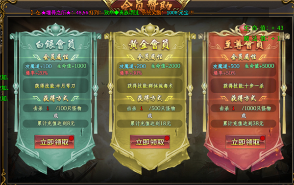 2、秒杀福利,任意充值领取巡航挂机,解放双手!!