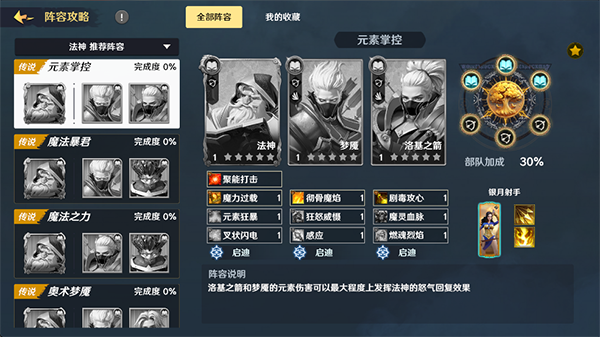 本阵容是三名英雄都能主打减益效果和法术技能,阵容为全智慧、全远程体系,能为阵容带来超高的基础数值加成。