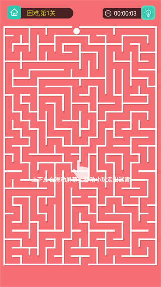 5、在关卡中,玩家需要通过上下左右滑动屏幕来控制小球的移动,玩家需要做的就是帮助小球走出迷宫;