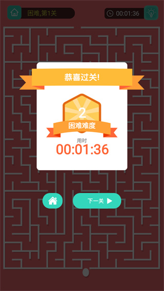 6、将小球走出迷宫后即可通关,通关后玩家可以点击下一关进行游戏;