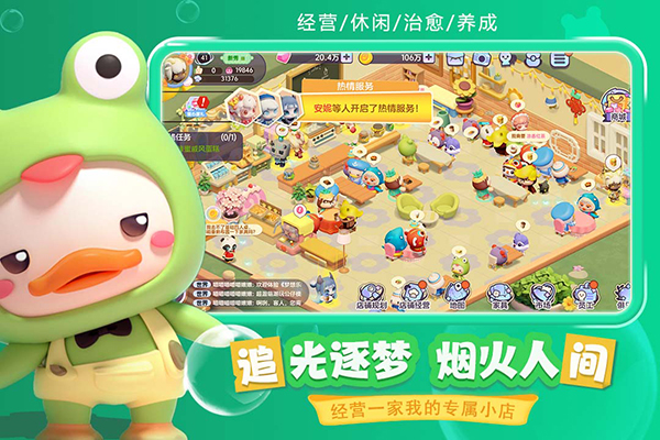 梦想乐园官方正版是一款卡通治愈模拟经营餐厅手游。在这里,玩家们可以打造一个时尚温馨的专属乐园,享受独特的治愈画面、个性化装扮与装饰、原创潮玩盲盒与激萌店员养成、超丰富的经营体验和个性化的互动社交。