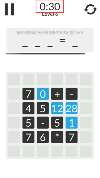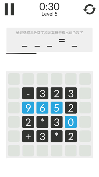 2、游戏中玩家需要通过选择黑色数字和运算符号来得出蓝色数字即可消除;