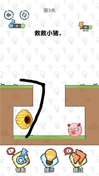 你将在游戏中通过画出外形来保护小猪,发挥你的想象力来画出各种图案,隔开小猪和蜂巢来避免被攻击,克服各种困难来帮助小猪脱离危险。游戏采用卡通可爱系画风,精致细腻的游戏场景,各种脑洞打开的关卡和陷阱,丰富的创意和有趣的益智题可能会打破常识,给你带来全新的体验。