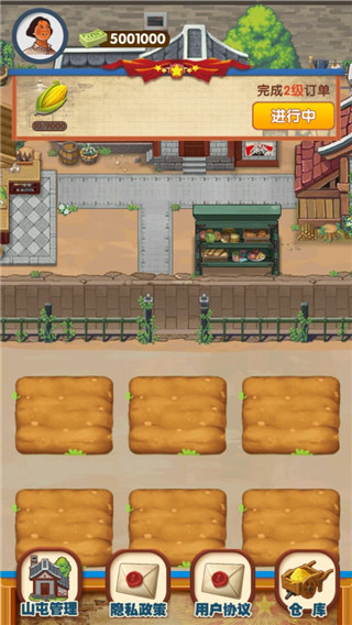 3、当然啦,玩家们也可以点击山屯管理升级自己的土地来增加盈利;