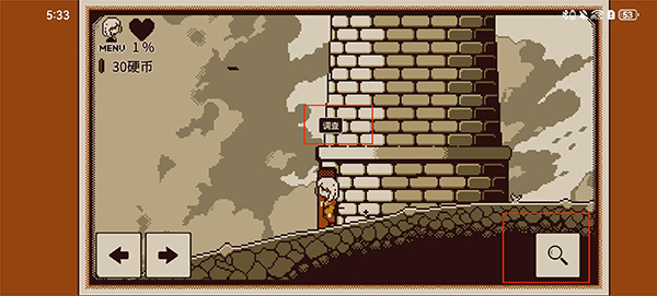 3、遇到能互动的事物,点击右下角“放大镜”图标进行互动。