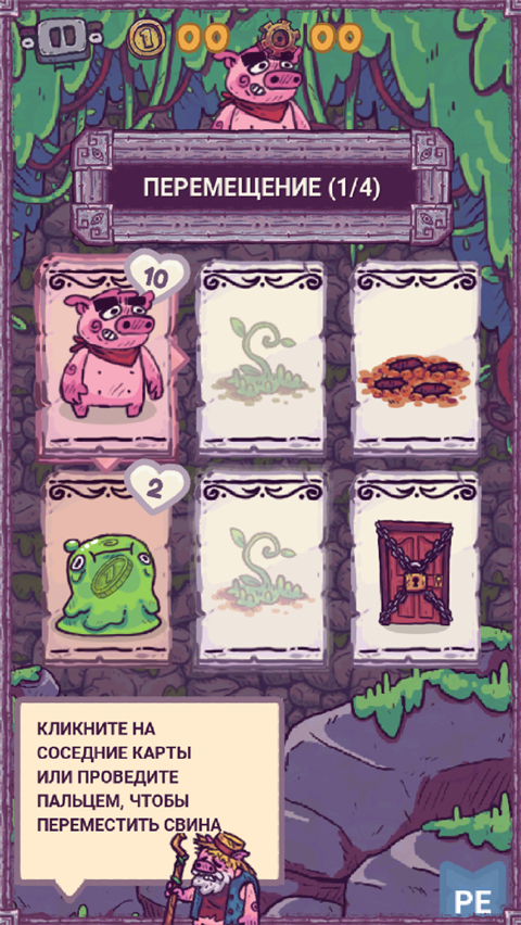 游戏中的主角是一只小猪,在卡牌组成的地牢自由的行动,收集各种武器装备消灭怪物敌人,构建属于自己的套牌来不断消灭更强大的敌人,经典回合制的玩法随时都可以体验。游戏道具、武器和敌人的种类都非常丰富,并且各自都有自己的特性,比如锤子可以击退敌人,手枪在攻击的同时还能对周围的敌人造成伤害,有的敌人会自动攻击周围的卡,有的敌人被攻击后会伤及身后的敌人等等,这些内容需要玩家通过积累杀死敌人数、累计步数来逐渐解锁。