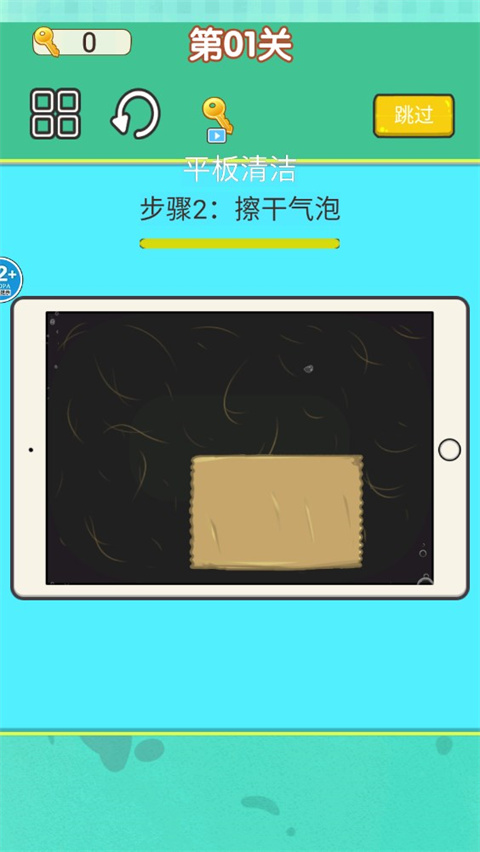 3、这里我们进入第一关平板清洁,首先要清理浮尘;