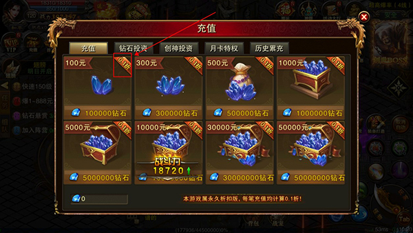 5、0.1折:游戏内任意充值都能享受0.1折,包括各种月卡、钻石投资等充值活动,还能领取百倍返利。