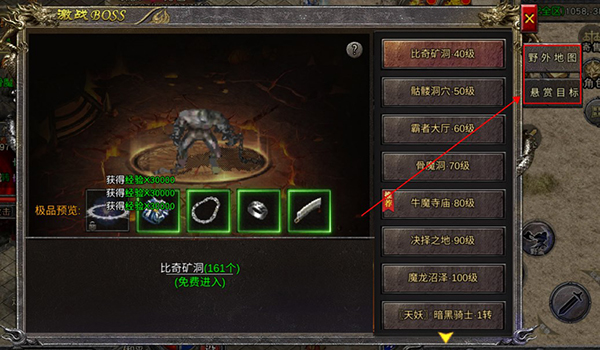 游戏内boss分为野外boss和悬赏boss,击杀boss可以获得各种装备,boss等级越高,获得的装备品质也就越高。