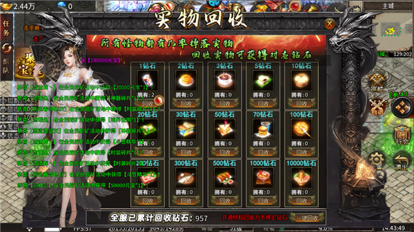 1、实物回收所有实物怪物爆出,可兑换大量钻石