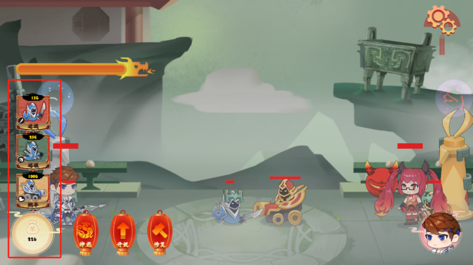 4、召唤角色需要等待冷却,保护好水晶开始战斗吧