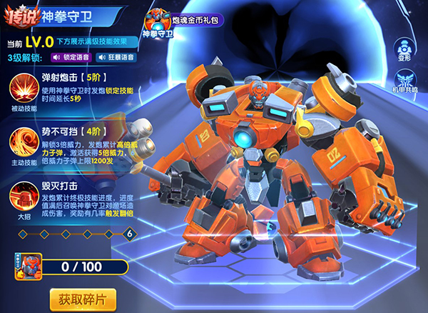 需要100个神拳碎片解锁,以增强锁定技能为主,升阶可以解锁弹射炮击、势不可挡、毁灭打击三个强力技能,大幅增加炮弹威力。