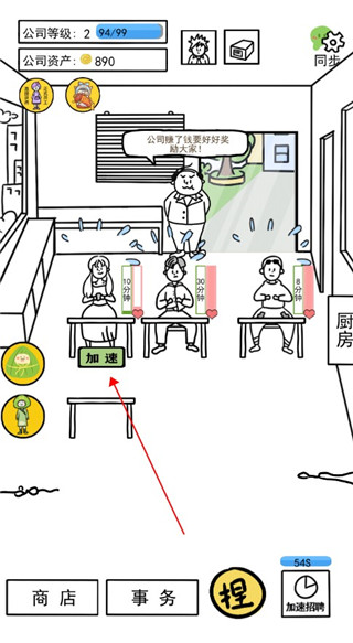 6、职员入职后我们可以点击加速来督促员工加油干活
