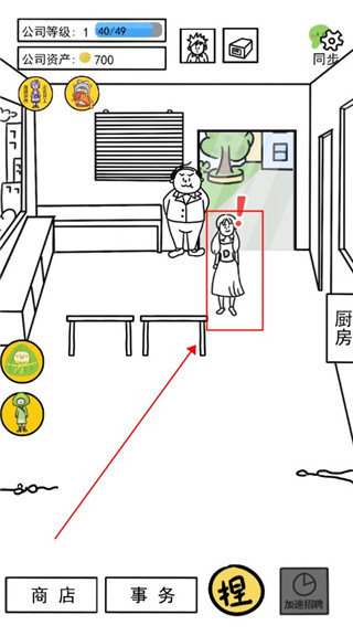 4、然后重要的就是职员招聘了,我们返回界面后可以看到有人来面试,我们点击她